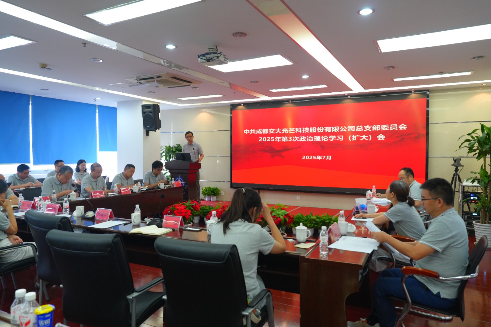 7月18日,交大光芒黨總支召開2025年第3次政治理論學(xué)習(xí)(擴(kuò)大)會。會議由黨總支書記、常務(wù)副總經(jīng)理王濤主持,黨總支委員、經(jīng)營班子成員和中層及以上管理人員參加學(xué)習(xí)。