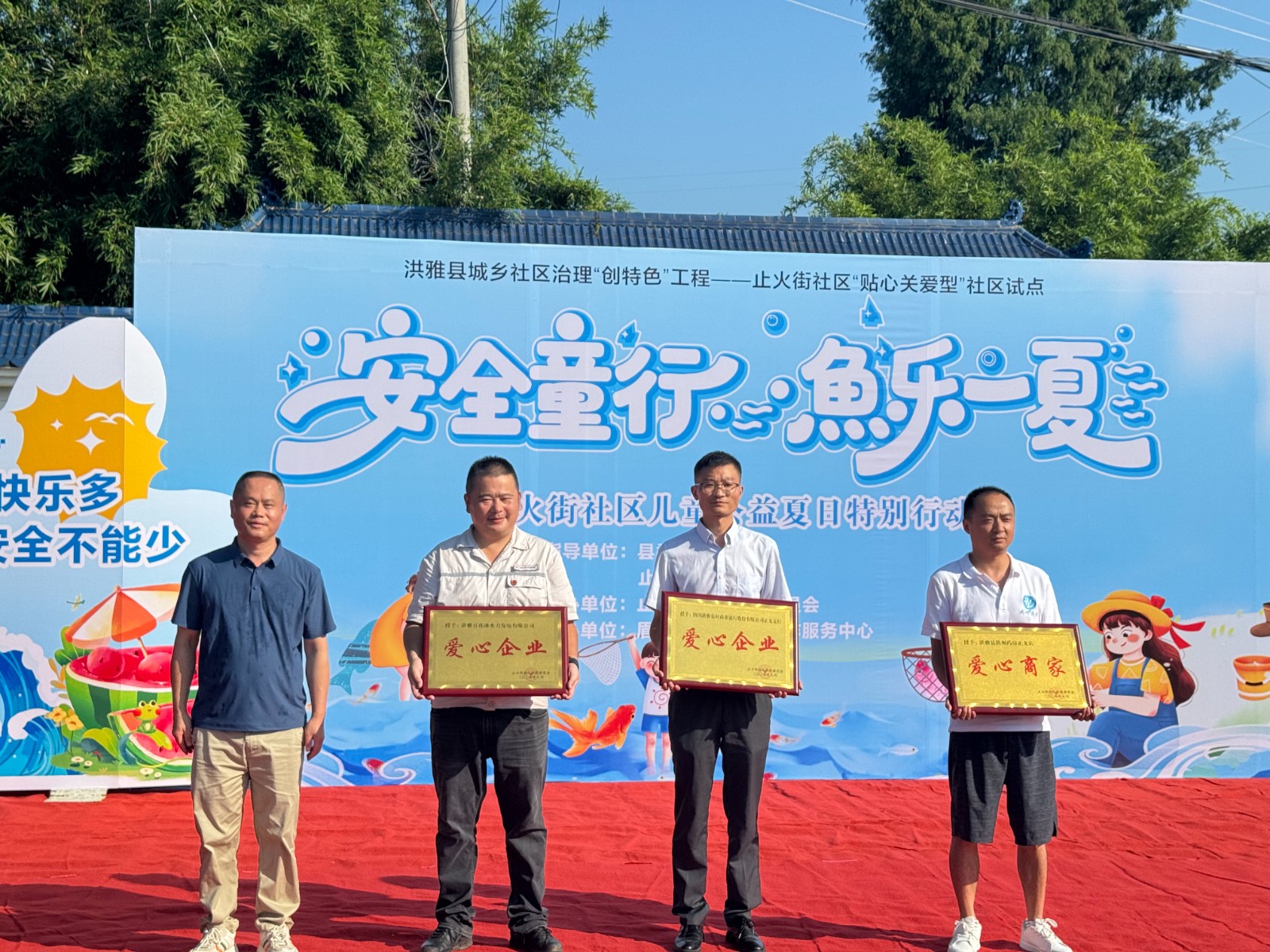 近日,止戈鎮(zhèn)止火街社區(qū)組織開展“歡樂童行?魚樂一夏” 活動?;顒又校垢赕?zhèn)止火街社區(qū)為四川洪雅百花灘水力發(fā)電有限公司授予“愛心企業(yè)”榮譽稱號。