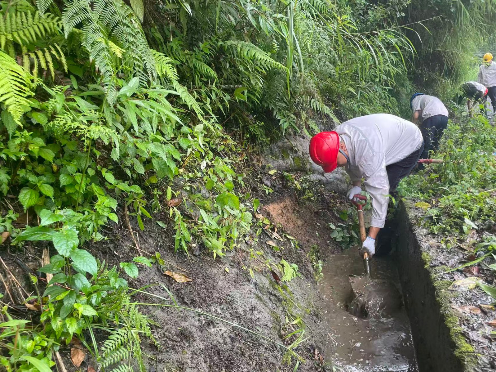 在暴雨預警拉響的第一時間,這支黨員先鋒隊就踏上了巡查征程。當發(fā)現排水溝淤積隱患時,副廠長、老黨員張坤祥二話不說,就跳進了滿是淤泥的排水溝進行清淤,他說:“淤泥增加1厘米,防汛壓力就重1分!”他的話語樸實無華,卻道出了一名共產黨員的責任與擔當。暴雨如注時,值守人員頂著傾盆大雨沖進廠房,在電閃雷鳴中對關鍵設備進行雨中特巡,雨水順著安全帽檐流進衣領,浸透了工作服,卻澆不滅他們守護機組安全的堅定信念。他們用沾滿淤泥的雨靴和浸透雨水的工裝,在防汛一線筑起了一道堅不可摧的“紅色堤壩”。截至目前,腳基坪電廠累計開展12次雨前、雨中、雨后特巡,清理淤積點13次。