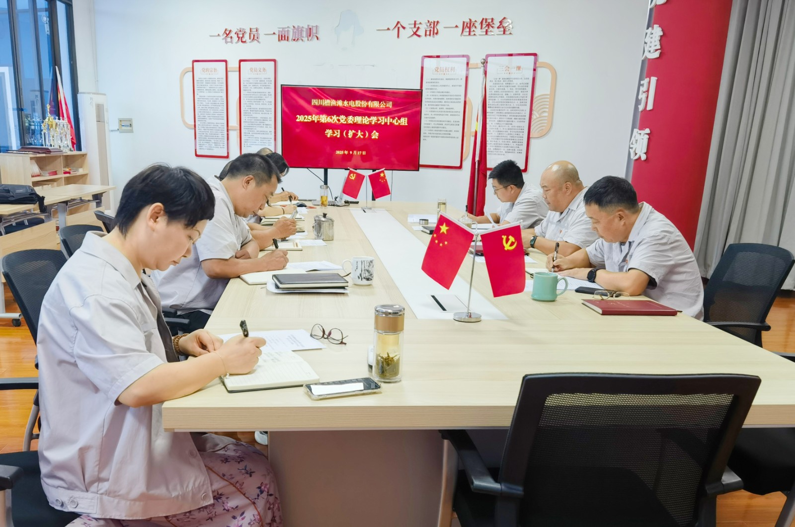 會(huì)議指出,公司正處在轉(zhuǎn)型升級(jí)、提質(zhì)增效的關(guān)鍵時(shí)期,面對(duì)新形勢(shì)新任務(wù),尤其需要從抗戰(zhàn)精神中汲取力量,錘煉過硬作風(fēng),凝聚發(fā)展合力。會(huì)議要求:一是突出政治引領(lǐng),強(qiáng)化作風(fēng)建設(shè)。要提高政治站位,深化理論學(xué)習(xí),把思想和行動(dòng)統(tǒng)一到上級(jí)黨委的決策部署上來,把弘揚(yáng)偉大抗戰(zhàn)精神與鞏固拓展中央八項(xiàng)規(guī)定精神學(xué)習(xí)教育成果結(jié)合起來,以作風(fēng)建設(shè)新成效推進(jìn)公司高質(zhì)量發(fā)展;二是聚焦主責(zé)主業(yè),落實(shí)任務(wù)指標(biāo)。要強(qiáng)化合規(guī)管理,修訂和完善各項(xiàng)規(guī)章制度,緊盯年度目標(biāo)任務(wù),狠抓安全生產(chǎn)不放松,優(yōu)化水庫調(diào)度和發(fā)電運(yùn)行,深化降本增效,防范化解重大風(fēng)險(xiǎn),切實(shí)把學(xué)習(xí)成效體現(xiàn)到完成生產(chǎn)經(jīng)營指標(biāo)的實(shí)際工作中來;三是勇于攻堅(jiān)克難,激發(fā)創(chuàng)新活力。要學(xué)習(xí)革命先輩“敢于斗爭、善于創(chuàng)造”的寶貴品質(zhì),進(jìn)一步提高公司全體員工主動(dòng)擔(dān)當(dāng)、積極作為的敬業(yè)精神,培育和發(fā)展新質(zhì)生產(chǎn)力,努力探索綠色發(fā)展新路徑,不斷增強(qiáng)企業(yè)核心競爭力和可持續(xù)發(fā)展能力。四是加強(qiáng)監(jiān)督檢查,確保和諧穩(wěn)定。國慶、中秋雙節(jié)將至,公司領(lǐng)導(dǎo)班子成員要深入基層,加強(qiáng)監(jiān)督檢查,及時(shí)了解職工所思所想,妥善解決可能存在的訴求和矛盾,做好節(jié)日期間的信訪維穩(wěn)工作,確保節(jié)日期間公司和諧穩(wěn)定。