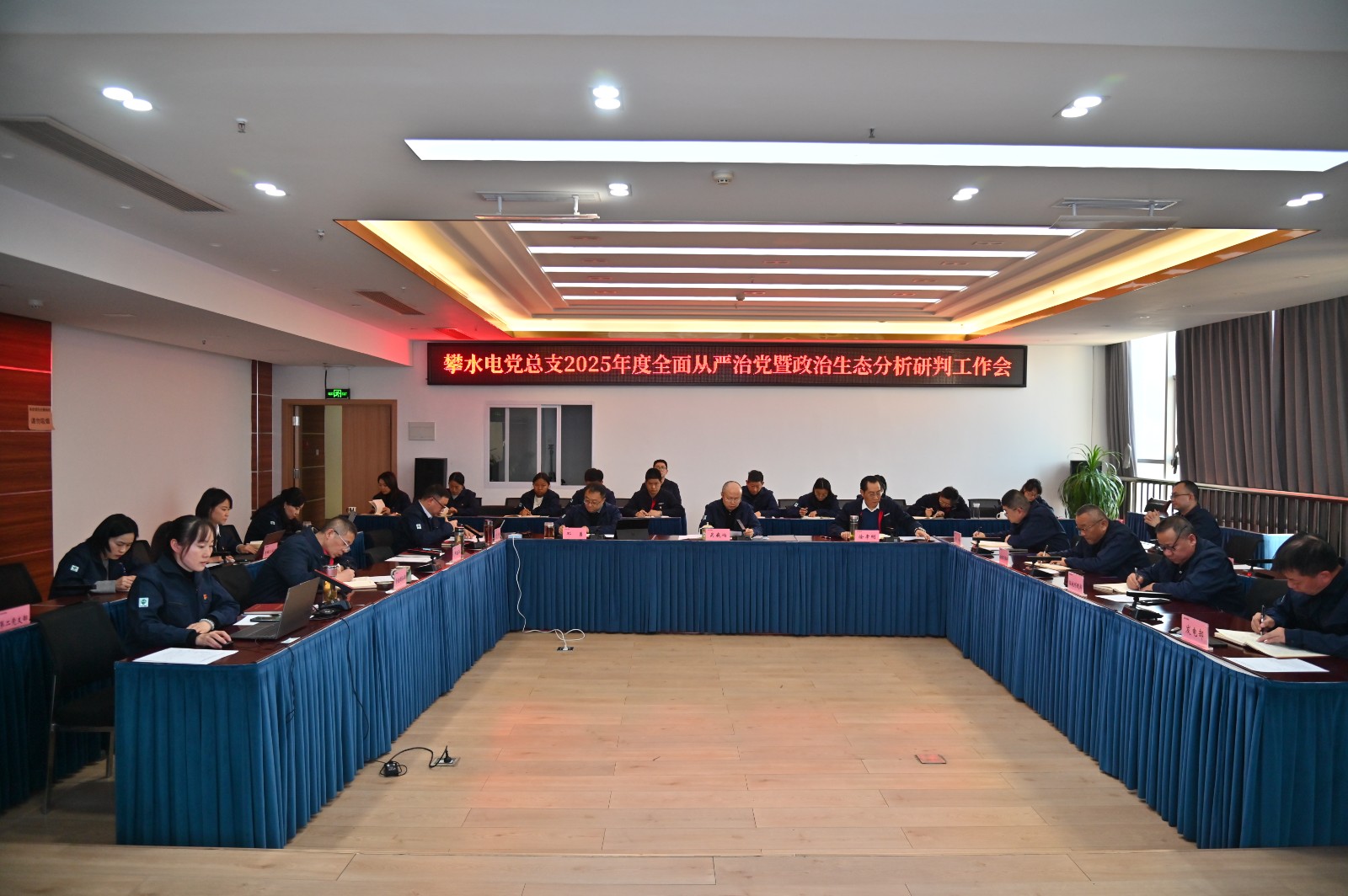 1月13日,攀水電黨總支組織召開(kāi)2025年度全面從嚴(yán)治黨暨政治生態(tài)分析研判工作會(huì),會(huì)議由公司黨總支委員、紀(jì)檢小組長(zhǎng)楊銳主持,黨總支副書(shū)記(主持黨總支工作)、總經(jīng)理吳巍嶼出席會(huì)議并講話;公司領(lǐng)導(dǎo)班子成員參加會(huì)議,全體中層干部、黨員列席會(huì)議。