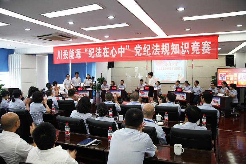 激情七月蓮花香,紀(jì)法銘記享安康。7月25日,由川投能源紀(jì)委主辦、交大光芒黨總支承辦的川投能源“紀(jì)法在心中”黨紀(jì)法規(guī)知識競賽在交大光芒生產(chǎn)基地會議室隆重舉行。集團(tuán)公司紀(jì)檢監(jiān)察部趙艷到會指導(dǎo),川投能源領(lǐng)導(dǎo)班子成員、所屬企業(yè)黨政一把手、川投能源本部全體黨員和交大光芒部分黨員代表等共計50余人到現(xiàn)場觀看了知識競賽。川能源本部機(jī)關(guān)三個支部、所屬企業(yè)天彭電力、交大光芒等五個代表隊(duì)參加了紀(jì)法知識競賽。舉辦此次競賽活動,旨在促進(jìn)全體黨員干部自覺以習(xí)近平新時代中國特色社會主義思想統(tǒng)領(lǐng)企業(yè)改革發(fā)展工作,用中央和省委最新決策部署引領(lǐng)思想行動,用黨紀(jì)條規(guī)規(guī)范廉潔從業(yè)行為,為川投能源健康可持續(xù)發(fā)展提供堅強(qiáng)的政治紀(jì)律保障。