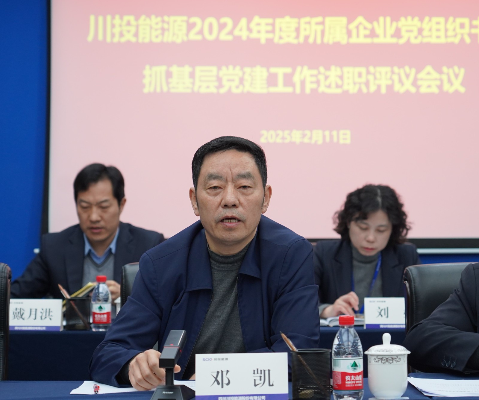 鄧凱表示,這次會(huì)議堅(jiān)持嚴(yán)的標(biāo)準(zhǔn)、嚴(yán)的作風(fēng)、嚴(yán)的要求,既肯定工作成績(jī)和亮點(diǎn),又指出存在的問(wèn)題和不足,全面反映了川投能源黨委和各所屬企業(yè)抓黨建工作的總體情況,達(dá)到了預(yù)期效果。他指出,2024年,川投能源黨委堅(jiān)定扛起管黨治黨政治責(zé)任,黨建引領(lǐng)改革發(fā)展取得新成效、實(shí)現(xiàn)新提升。他強(qiáng)調(diào),2025年,川投能源各級(jí)黨組織要堅(jiān)持用改革精神和嚴(yán)的標(biāo)準(zhǔn)推進(jìn)管黨治黨,推動(dòng)基層黨組織全面進(jìn)步、全面過(guò)硬。要突出舉旗定向,著力提高“政治三力”,持續(xù)推進(jìn)理論武裝,強(qiáng)化思想政治引領(lǐng),持續(xù)加強(qiáng)政治建設(shè)。要突出組織功能,嚴(yán)密組織體系,夯實(shí)基層基礎(chǔ),強(qiáng)化黨員教育管理,鍛造堅(jiān)強(qiáng)戰(zhàn)斗堡壘。要突出黨建引領(lǐng),堅(jiān)定支持改革重組,穩(wěn)步推進(jìn)重點(diǎn)任務(wù),抓實(shí)黨風(fēng)廉政建設(shè),扎實(shí)做好安全生產(chǎn),切實(shí)提升履職效能。